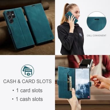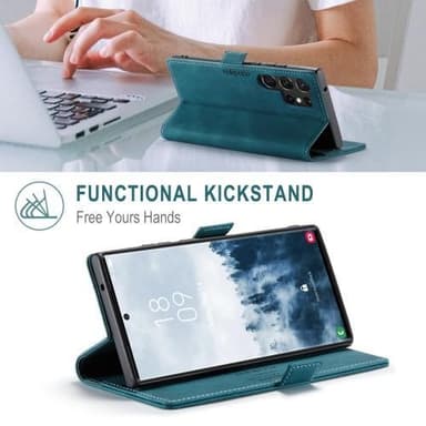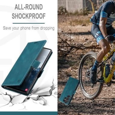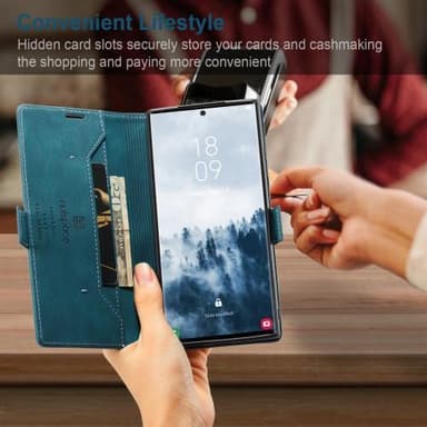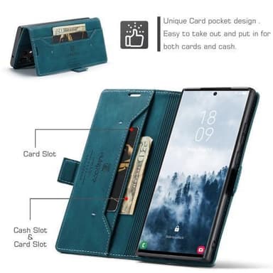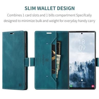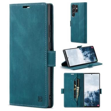 AUTSPACE A01 -sarja Samsung Galaxy S23 Ultra RFID -estävä pudotusta estävä puhelinkotelo Retro Texture PU-nahkainen lompakkojalusta Matta Flip -puhelimen kansi - sininen Premium PU-nahka ja pehmeä TPU-sisäkotelo, jossa on matta rakenne, tarjoavat herTutustu ominaisuuksiin