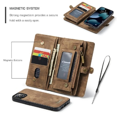 moniin välttämättömiin kortteihin ja käteiseen Vetoketjullinen käteislokero Yhteensopiva: iPhone 13 Mini Paketti sisältää: 1 x CASEME Monitoiminen 2-in-1-lompakko TPU+jaettu nahkainen puhelinkuori Vain lisävaruste, puhelin ei sisälly toimitukseen