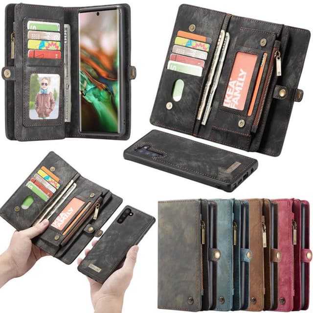 CaseMe Wallet 11 -kortti - Sisäpuolella on 11 korttia ja 4 lokeroa, joista yksi on valokuvalokero. - Korttipaikat suljetaan magneettisella lukolla. - Malliin mukautettu irrotettava magneettikuori. - Kolikotasku / seteli vetoketjulla. - Ulkopuolinen nappilukko Takaosa on myös säätötoiminto esimerkiksi elokuvien katselua varten. Tekniset tiedot Väri: musta, sininen, ruskea, punainen Korttipaikkojen lukumäärä: 11 sisältäen valokuvataskun Kolikotasku vetoketjulla: 1.. Setelien lukumäärä: 4 kpl Tämä tuote on yhteensopiva Samsung Galaxy Note 10 kanssa Mallinumero: SM-N970F (6,28 "") Valmistaja: CaseMe Materiaaliahka / mokka