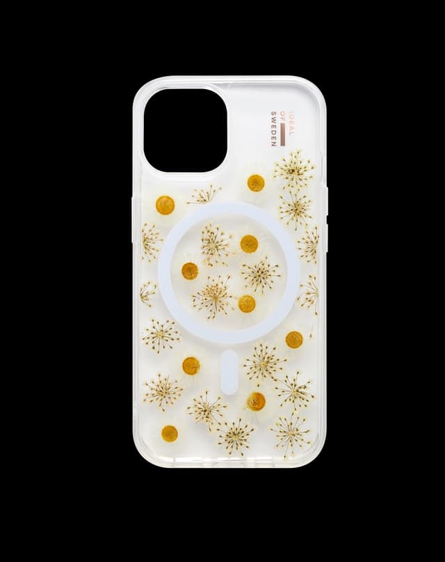 Läpinäkyvä suojakuori oikeilla kukkien terälehdillä ja MagSafe-yhteensopivuus