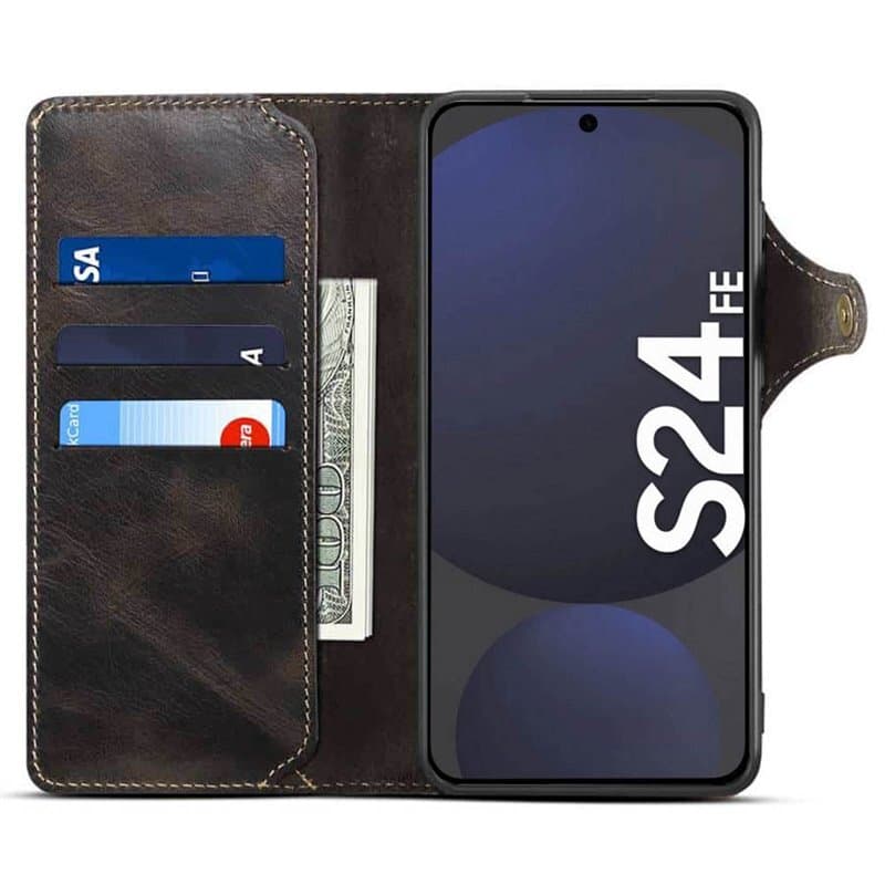 Yksinoikeudella ja käytännöllinen matkapuhelimen suojakotelo aidoista nahkasta. Suojakotelo suojaa matkapuhelinta tehokkaasti lialta, naarmuilta ja iskuilta. Varustettu taskulla esim. pankkikortteja, henkilökortteja, ajokortteja, seteleitä, kuittauksia jne. Matkapuhelimen lompakko on suunniteltu antamaan pääsy äänenvoimakkuuspainikkeisiin, kaiuttimeen, mikrofoniin, kameraan ja latausliitäntään jne. Puhelin pysyy paikallaan kestävän silikonin/tpu:n muotoiltujen kehysten avulla. Magneettinen nappilukko pitää matkapuhelimen lompakon suljettuna.