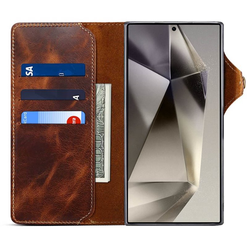 Denior lompakkokotelo nahkaa Samsung Galaxy S25 Ultra - RuskeaTutustu ominaisuuksiin