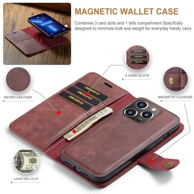 DG MING iPhone 14 Pro 2-in-1 magneetti lompakkokotelo - Punainen