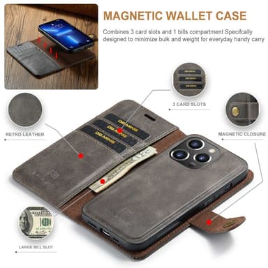 DG MING iPhone 14 Pro Max 2-in-1 magneetti lompakkokotelo - Harmaa