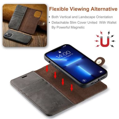 Nahkalompakkokotelo, jossa on magneettisesti irrotettava sisäkuori.Tutustu ominaisuuksiin