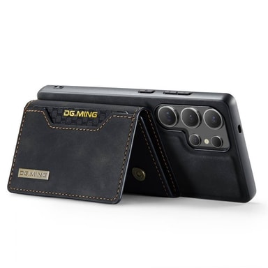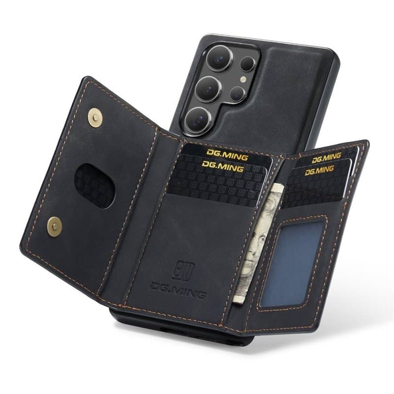 DG-Mingin matkapuhelimen kuori, yhteensopiva Samsung Galaxy S25 Ultra kanssa, varustettu irrotettavalla magneettisella lompakolla. Mobiilikuori sisältää integroidut magneetit, jotka pitävät lompakon paikallaan. Kätevää ja helppoa vastata puheluihin, tai jos haluat jättää lompakkokohdan kotiin ja käyttää vain puhelinta. Kotelo on varustettu käytännöllisillä korttitaskuilla.