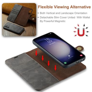 Tämä 2-in-1 magneettinen suojakotelo tarjoaa sekä elegantin nahkakotelon että tukevan PC-taustakuoren. Käytä niitä yhdessä tai erikseen tarpeesi mukaan. Käytännöllisessä nahkakotelossa on tilaa kolmelle kortille ja seteleille.Tutustu ominaisuuksiin