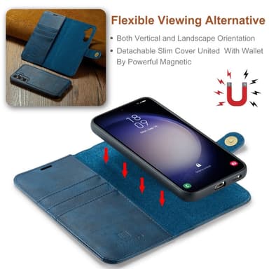 Tämä 2-in-1 magneettinen suojakotelo tarjoaa sekä elegantin nahkakotelon että tukevan PC-taustakuoren. Käytä niitä yhdessä tai erikseen tarpeesi mukaan. Käytännöllisessä nahkakotelossa on tilaa kolmelle kortille ja seteleille. Turvallinen sulkeminen suojaa arvoesineitäsi, ja sisäänrakennettu jalustatoiminto helpottaa videoiden katselua. Voit jopa puhua puheluita kotelon ollessa suljettuna älykkään etuosan leikkauksen ansiosta.