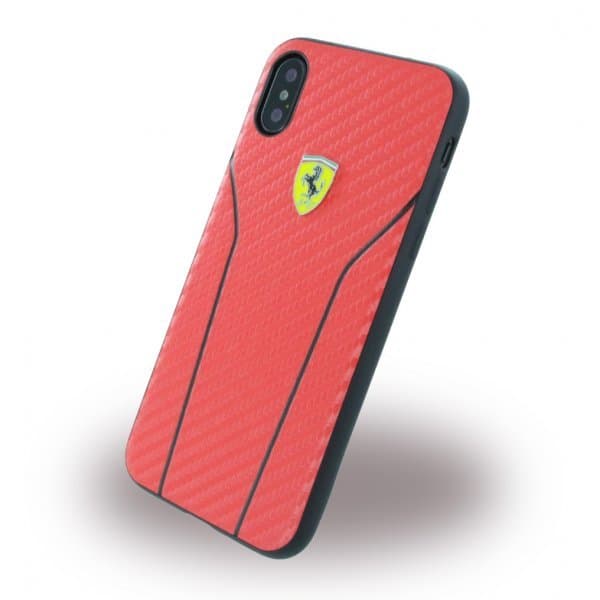 Ferrari Scuderia Carbon Skal till iPhone X/Xs Kolfiberlook PU-läder Kortfack Röd Svart