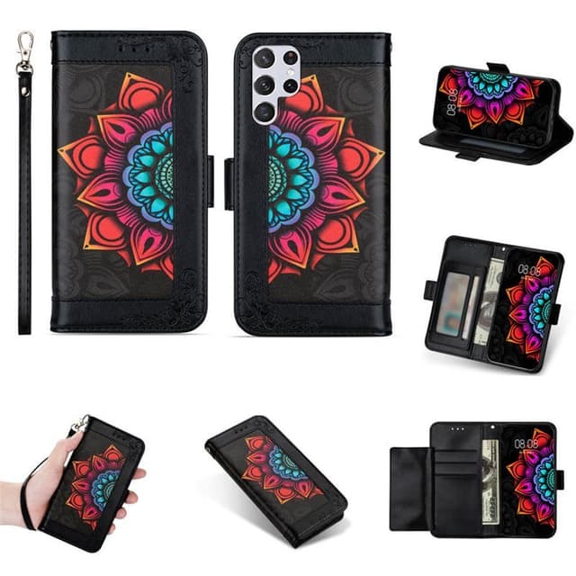 • Flower Lompakkokotelo 4-kortti Samsung Galaxy S22 Ultra - Musta