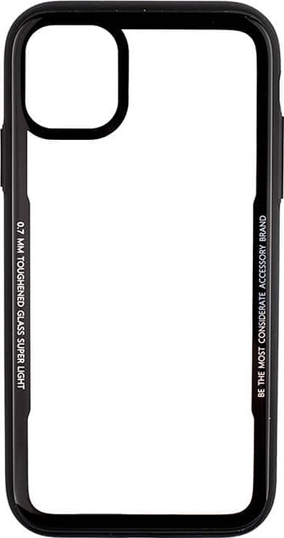 Suojaa iPhone 11 Pro -älypuhelintasi läpinäkyvällä lasisella Gear -kuorella, jossa on mustat reunat. Ohut kuori asettuu täydellisesti puhelimen ympäri, kuitenkaan peittämättä sen kameraa tai liitäntöjä.