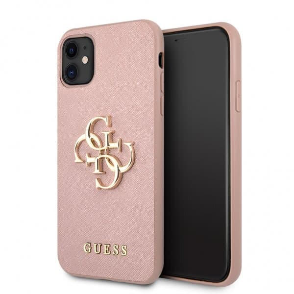• Guess iPhone 11 Kuori 4G Logo Saffiano Vaaleanpunainen