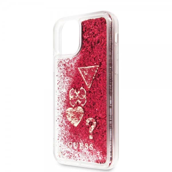 • Guess iPhone 11 Kuori Kimallus Hearts Punainen