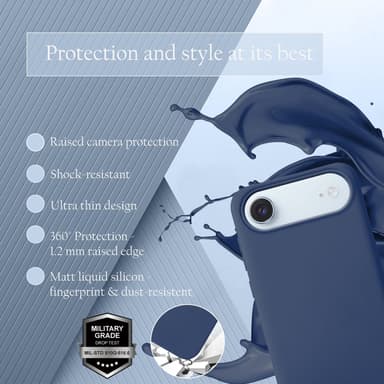 [Nestemäinen silikoni] Tämä iPhone 17 AIRin kotelo on valmistettu korkealaatuisesta nestemäisestä silikonista, ja se tarjoaa pitkäkestoista kestävyyttä ja miellyttävän käden tuntuman kaksikerroksisen rakenteensa ansiosta. Sisempi mikrokuitupehmuste suojaa lisäksi kulmia kulumiselta.
