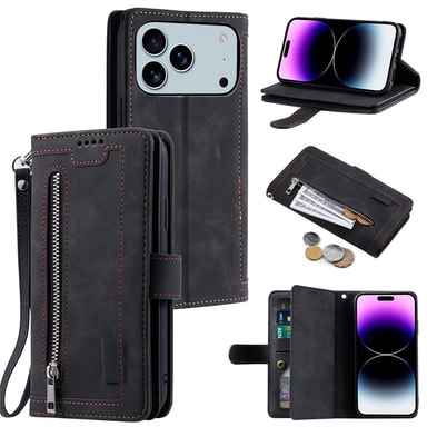 iPhone 17 Pro Max Kuori Vetoketjutaskulla ja 9 Korttipaikalla PU-nahasta