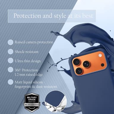 [Nestemäinen silikoni] Tämä iPhone 17 PROin kotelo on valmistettu korkealaatuisesta nestemäisestä silikonista, ja se tarjoaa pitkäkestoista kestävyyttä ja miellyttävän käden tuntuman kaksikerroksisen rakenteensa ansiosta. Sisempi mikrokuitupehmuste suojaa lisäksi kulmia kulumiselta.