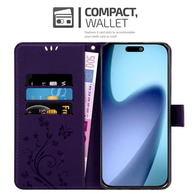 iPhone 17 Suojakuori Lompakkokotelo Kukka (Violetti)