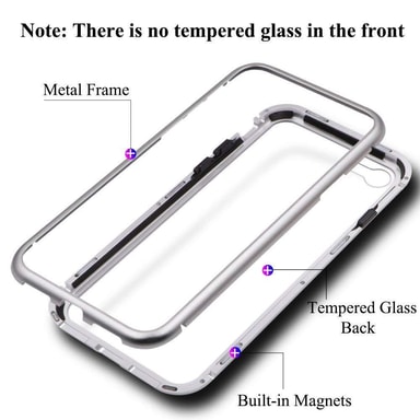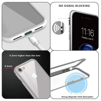 Skyddar baksida och kanter: Skydda din iPhone 7 eller 8 med ett skal av härdat glas med magnetisk metallram. iPhone fodralet är transparent på baksidan så att den klassiska snygga iPhone designen syns. Skalet har exakt uppmätta uttag för högtalare, laddnings-/ljudport och knappar.