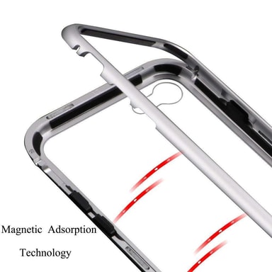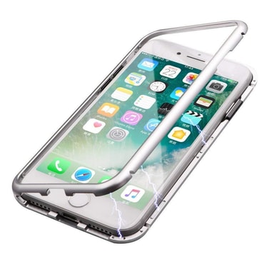 Precis utskärningar för full kompatibilitet: Ett speciellt för iPhone 7 och iPhone 8 utformad magnetiskt skal med silverfärgat ram och transparent baksida av glas.