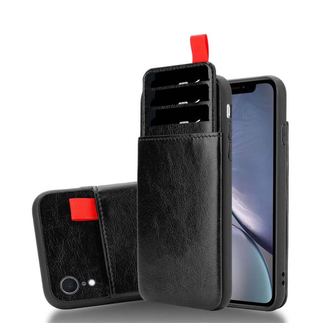 SUUNNITTELU: Laadukas keinonahkakotelo, joka suojaa puhelintasi ja näyttää samalla hyvältä. Kotelo on suunniteltu siten, että voit vetää ulos 2 korttipaikkaa punaisen kielekkeen ansiosta.