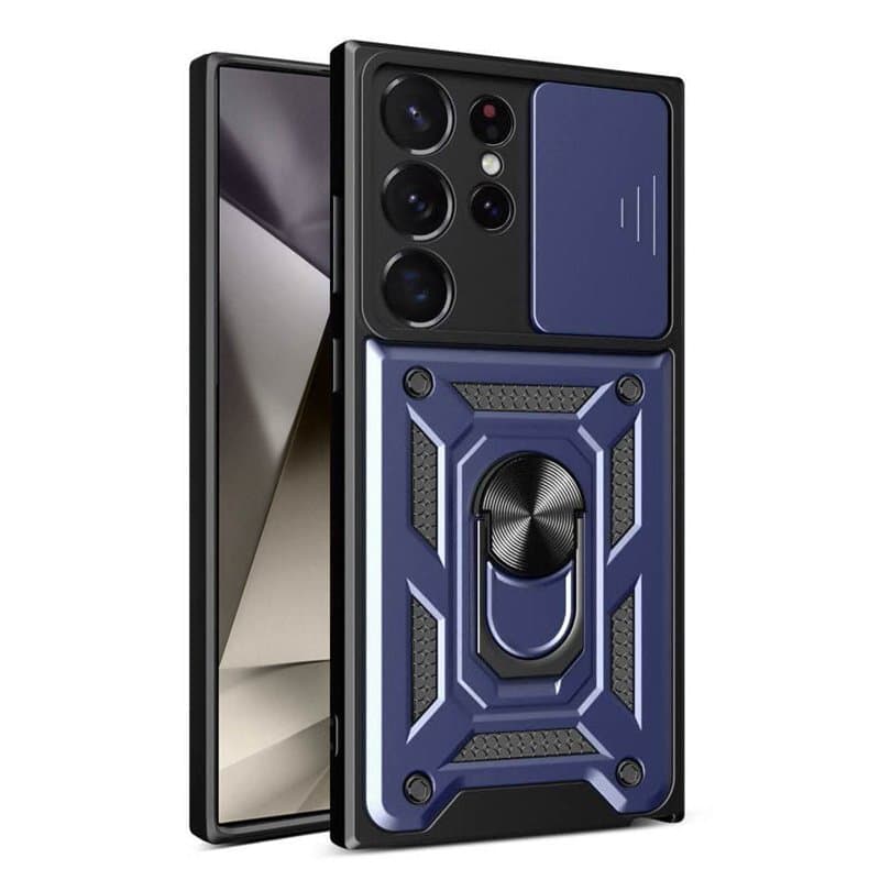 Tämä tyylikäs puhelinkotelo tarjoaa täydellisen tasapainon tyylin ja suojan välillä. Se on monipuolinen kotelo, joka on suunniteltu pitämään puhelimesi hyvin suojattuna samalla säilyttäen sen toiminnallisuuden ja antaen modernin ulkonäön. Ergonominen muotoilu varmistaa, että kotelo tuntuu luonnolliselta kädessäsi, jotta voit käyttää puhelintasi turvallisesti kompromisoimatta mukavuutta. Koteloa on huolellisesti suunniteltu varmistamaan pääsy puhelimen painikkeisiin ja toimintoihin. Puhelinkotelo on varustettu sisäänrakennetulla taittuvalla tuelle, joka on suunniteltu tarjoamaan optimaalisen handsfree-kokemuksen. Koteloissa on monipuolinen rengastuki takana, joka toimii myös selfie-renkaana. Tämä nerokas ominaisuus mahdollistaa puhelimen pitämisen turvallisesti selfieiden aikana, mikä antaa lisää vakautta ja hallintaa. Lisäksi puhelinkotelo on varustettu liukuvalla luukkutoiminnolla, joka suojaa kameraa naarmuilta ja roskilta. Helppo liukumekanismi nopeaa pääsyä varten kameraan.