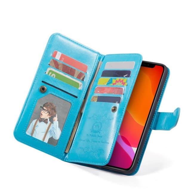 Kotelo avautuu ja sulkeutuu helposti piilotetulla magneettilukolla. Tämä lompakkokotelo on suunniteltu tilaa kaikille 9 luottokortille, mukaan lukien valokuvatasku. Aikot suljetaan painikkeella, 3 seteliä. Luottokorttipaikkojen takaosa on sileä, mikä suojaa näyttöäsi.