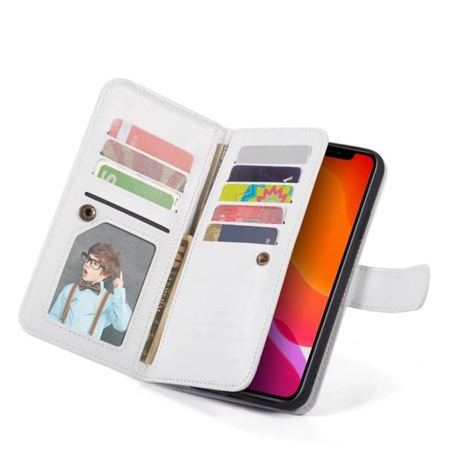 Kotelo avautuu ja sulkeutuu helposti piilotetulla magneettilukolla. Tämä lompakkokotelo on suunniteltu tilaa kaikille 9 luottokortille, mukaan lukien valokuvatasku. Aikot suljetaan painikkeella, 3 seteliä. Luottokorttipaikkojen takaosa on sileä, mikä suojaa näyttöäsi.