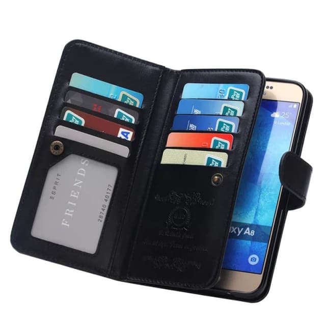 Kotelo avautuu ja sulkeutuu helposti piilotetulla magneettilukolla. Tämä lompakkokotelo on suunniteltu tilaa kaikille 9 luottokortille, mukaan lukien valokuvatasku. Aikot suljetaan painikkeella, 3 seteliä. Luottokorttipaikkojen takaosa on sileä, mikä suojaa näyttöäsi.