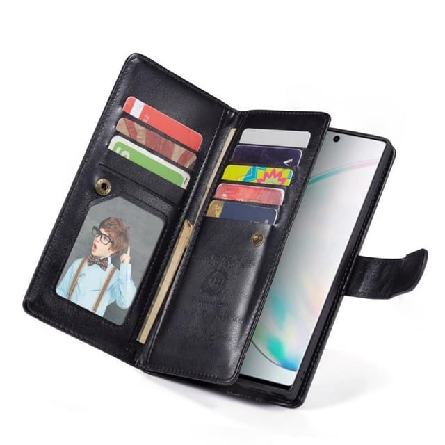 Kotelo avautuu ja sulkeutuu helposti piilotetulla magneettilukolla. Tämä lompakkokotelo on suunniteltu tilaa kaikille 9 luottokortille, mukaan lukien valokuvatasku. Aikot suljetaan painikkeella, 3 seteliä. Luottokorttipaikkojen takaosa on sileä, mikä suojaa näyttöäsi.