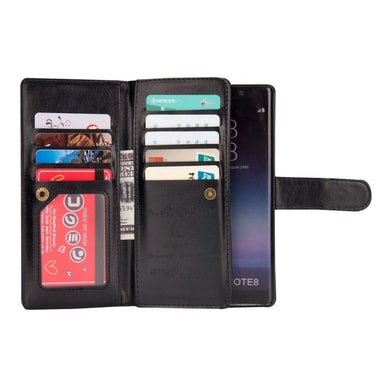 Kotelo avautuu ja sulkeutuu helposti piilotetulla magneettilukolla. Tämä lompakkokotelo on suunniteltu tilaa kaikille 9 luottokortille, mukaan lukien valokuvatasku. Aikot suljetaan painikkeella, 3 seteliä. Luottokorttipaikkojen takaosa on sileä, mikä suojaa näyttöäsi.