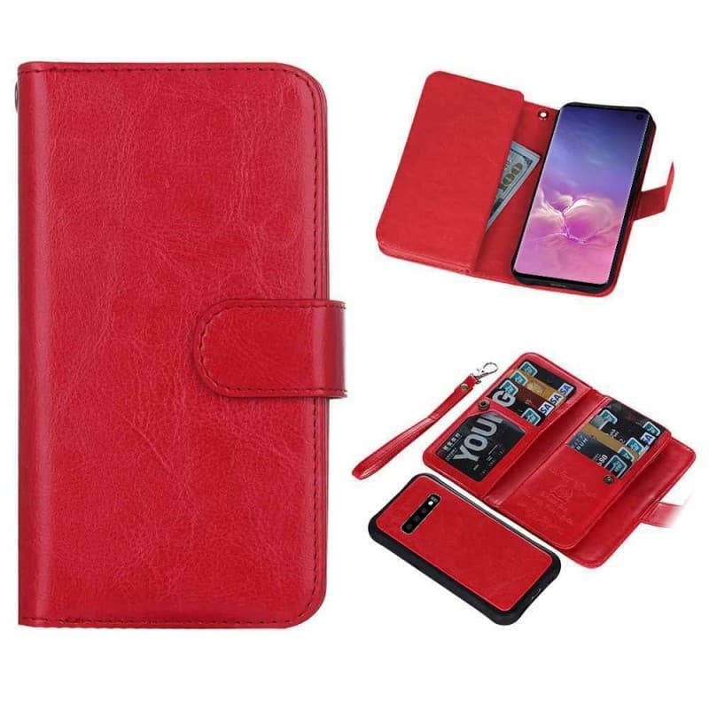 Tämä lompakkokotelo on suunniteltu tilaa kaikille 9 luottokortille, mukaan lukien valokuvatasku. Aikot suljetaan painikkeella, 3 seteliä. Luottokorttipaikkojen takaosa on sileä, mikä suojaa näyttöäsi. Piilotettu magneettinen suljin ulkopuolella pitää liikkuvan lompakon kiinni. Mukana toimitetun magneettikuoren avulla puhelimen voi helposti poistaa lompakosta, vaikka haluat jättää lompakon kotona ja suojata silti matkapuhelinta. Tekniset tiedot