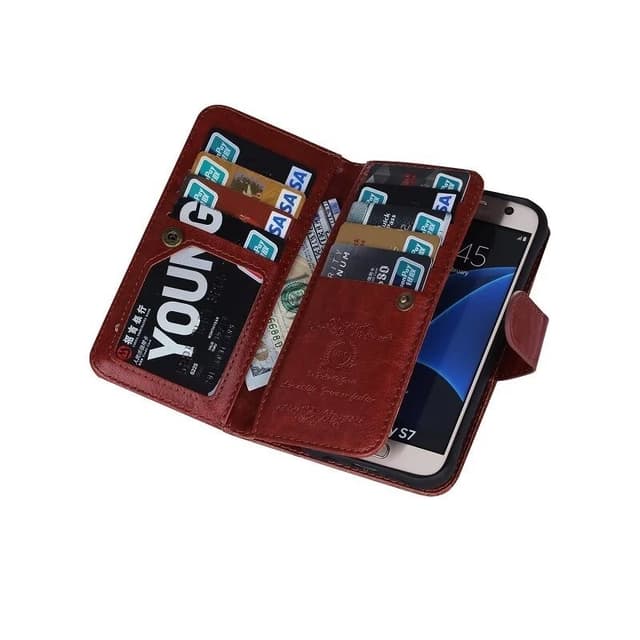 Lompakkokotelolla voit suojata puhelimesi kätevästi lialta, naarmuilta, kolhuilta ja kantaa samalla pankkikorttiasi, ajokorttia jne. Tämä tarkoittaa, että sinun ei tarvitse kuljettaa puhelinta ja lompakkoa erikseen, vaan sen sijaan, että sinulla on kaikki samassa paikassa. Pääsy äänenvoimakkuuspainikkeisiin, kaiuttimiin, mikrofoniin, kameraan ja latauspistorasioihin jne ... Puhelin pidetään paikallaan mallissa varustetulla kuorella, jonka silikonireunat tekevät puhelimesta erityisen kestävän. Kotelo avautuu ja sulkeutuu helposti piilotetulla magneettilukolla. Tämä lompakkokotelo on suunniteltu tilaa kaikille 9 luottokortille, mukaan lukien valokuvatasku. Aikot suljetaan painikkeella, 3 seteliä. Luottokorttipaikkojen takaosa on sileä, mikä suojaa näyttöäsi. Piilotettu magneettinen suljin ulkopuolella pitää liikkuvan lompakon kiinni. Mukana toimitetun magneettikuoren avulla puhelimen voi helposti poistaa lompakosta, vaikka haluat jättää lompakon kotona ja suojata silti matkapuhelinta . Tekniset tiedot Väri: Valitse käytettävissä oleva väri Korttipaikkojen lukumäärä: 9 (1. kuva) Setelien lukumäärä: 3 kpl Valokuva taskut: 1. Muut: Rannehihnan reiät (rannehihna mukana) Tämä tuote on yhteensopiva Samsung Galaxy S7 -laitteen kanssa Mallinumero: SM-G930F Materiaali: PU-nahka Tärkeää: Langaton lataus EI toimi tämän kuoren kanssa. Merkki: BRG