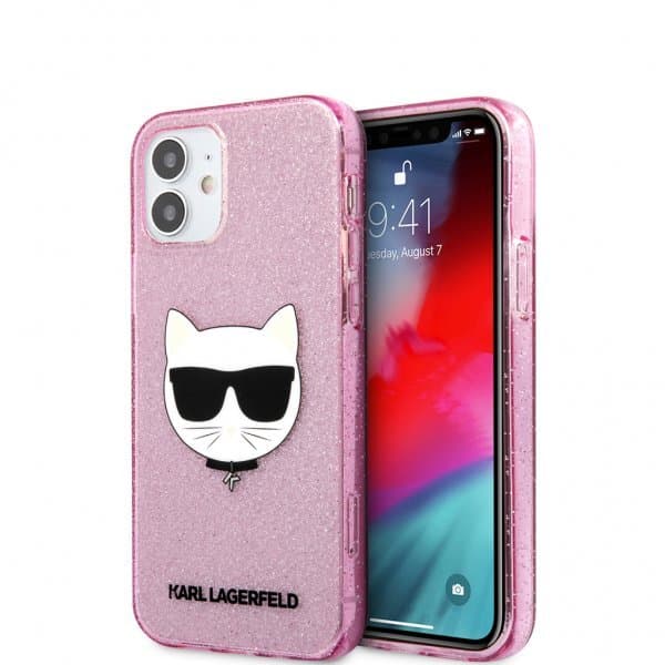 Karl Lagerfeld iPhone 12 Mini Kuori Choupette Glitter Vaaleanpunainen