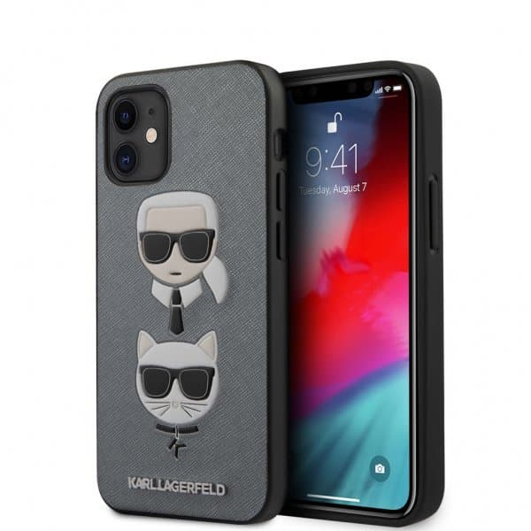 • Karl Lagerfeld iPhone 12 Mini Suojakuori Saffiano Karl & Choupette Hopea