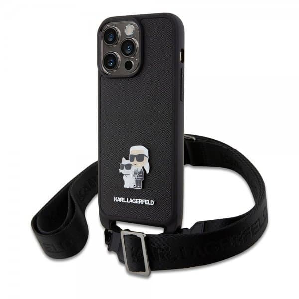 • Karl Lagerfeld iPhone 15 Pro Max Kuori Saffiano Karl & Choupette Crossbody Musta
