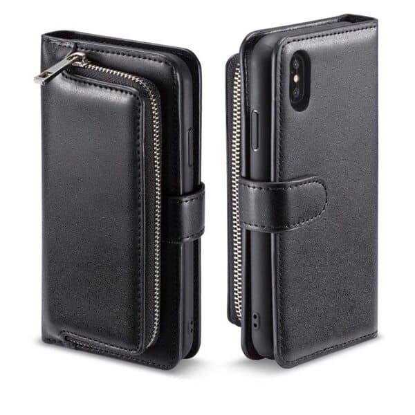 Tämä tyylikäs keinonahkainen lompakkokotelo sinun iPhone XS Max mallille korvaa täysin vanhan lompakkosi. Kotelo ei ainoastaan suojaa puhelinta naarmuilta, iskuilta ja kulumiselta, se on myös varustettu korttitaskuilla, johon sopii useita luottokortteja, käyntikortteja ja seteleitä, sekä vetoketjullinen lokero kolikoille ja muille pikkutavaroille. Käytännöllinen ja tyylikäs suojakotelo ja lompakko yhdessä, joka säästää tilaa takintaskussa tai käsilaukussa! Kaikki puhelimen portit ja painikkeet ovat helposti käytettävissä suoraan kotelossa.