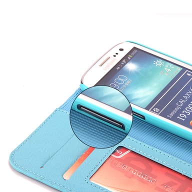 Lompakkokotelo on suunniteltu katkaisuilla äänenvoimakkuuspainikkeille, kaiuttimille, mikrofonille, kameralle ja latauspistorasialle.