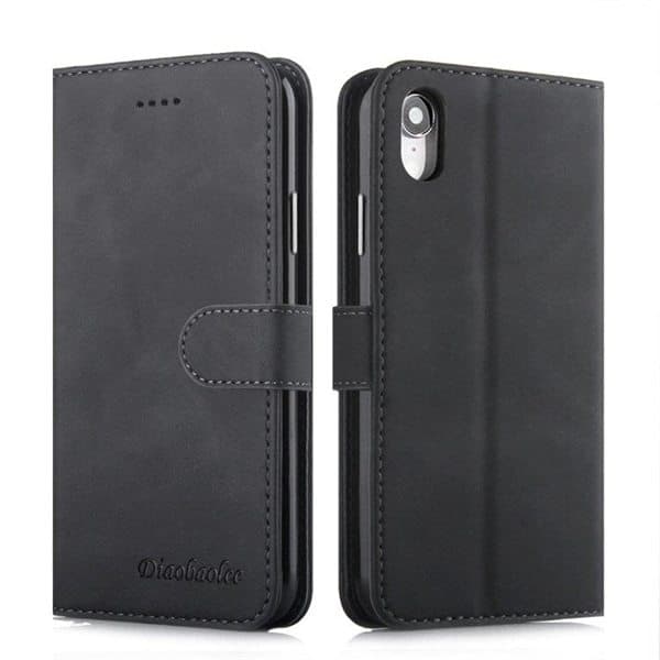 Lompakkokotelo telineellä iPhone XR - Musta