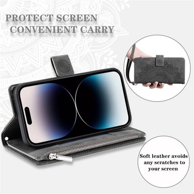 Lompakkokotelo yhteensopiva iPhone 17 Pro PU nahkainen puhelinkotelo mandala kukkakuvioPremium materiaaliTämä puhelinkotelo on valmistettu korkealaatuisesta PU nahasta TPU sisäosalla ja tarjoaa miellyttävän tuntuman ja vakaan suojanMuodikas muotoiluKTutustu ominaisuuksiin