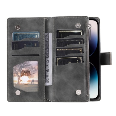 Useilla korttipaikoilla setelitaskulla ja vetoketjullisella taskulla varustettu kotelo tekee tärkeiden korttien kolikoiden ja käteisen kuljettamisesta helppoa