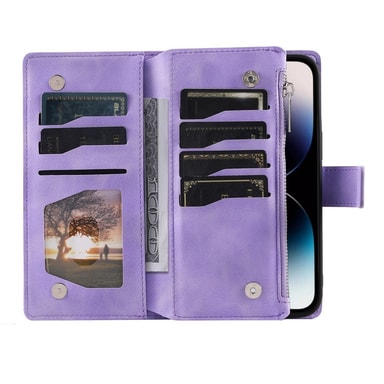 Useilla korttipaikoilla setelitaskulla ja vetoketjullisella taskulla varustettu kotelo tekee tärkeiden korttien kolikoiden ja käteisen kuljettamisesta helppoa