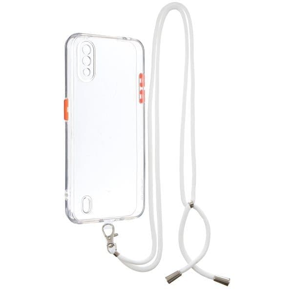 Läpinäkyvä matkapuhelimen kotelo hihnalla mallille Samsung Galaxy A01