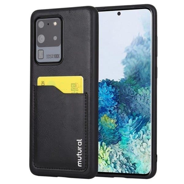 Kova shockproof matkapuhelinkotelo / suojakuori iskua vaimentavilla reunoilla pehmeää TPU:ta ja tyylikäs, mutta kestävä pinta PU-nahkaa. Tarjoaa sinun Samsung Galaxy S20 Ultra puhelimestasi mukavan ja tukevan otteen suojaten puhelinta lialta, pölyltä, naarmuilta, iskuilta, pudotuksilta ja arjen kulumiselta. Kuori istuu tiukasti, mikä tarjoaa optimaalisen suojan, mutta jättää täyden pääsyn kaikkiin puhelimen portteihin ja painikkeisiin. Matkapuhelimen kuoren takana on käytännöllinen korttitasku luottokorteille jne.
