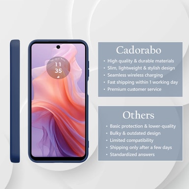 [Täydellinen istuvuus] Erityisesti Motorola Moto E14iä varten kehitetty Cadorabo-kotelo sopii täydellisesti sen ääriviivoihin. Se ympäröi tarkasti äänenvoimakkuuspainikkeet, valmiustilapainikkeen ja laitteen kaaret.
