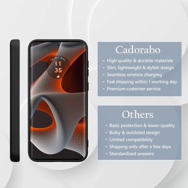 [Täydellinen istuvuus] Erityisesti Motorola Moto Edge 50 Proiä varten kehitetty Cadorabo-kotelo sopii täydellisesti sen ääriviivoihin. Se ympäröi tarkasti äänenvoimakkuuspainikkeet, valmiustilapainikkeen ja laitteen kaaret.