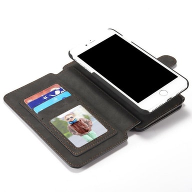 Lompakkokotelo 2-kortti avautuu piilotetulla magneettikytkimellä, sisäpuolella on 4 lokeroa, joista yksi on valokuvan tasku.