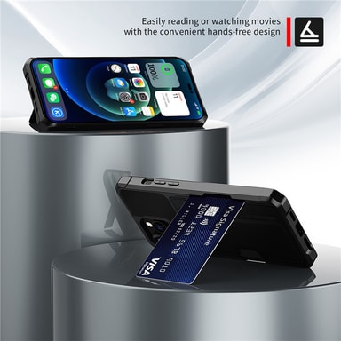 Kätevä korttitasku: Tämän iPhone 14 -kotelon takana oleva integroitu korttitasku mahdollistaa tärkeiden korttien, kuten luottokorttien, henkilökortin tai matkakorttien, kätevän kuljettamisen. Tämä poistaa erillisen lompakon tarpeen, mikä virtaviivaistaa jokapäiväistä kantamista. Turvallinen korttipaikka pitää korttisi turvassa ja helposti saatavilla. Olitpa työmatkalla, ostoksilla tai matkoilla, tämä kotelo tarjoaa käytännöllisen ja kätevän ratkaisun tärkeiden korttien kuljettamiseen iPhone 14:n rinnalla. Magneettisuljin varmistaa, että korttisi pysyvät turvallisesti paikallaan estäen niitä putoamasta. Nauti minimalistisen elämäntavan vapaudesta tällä toiminnallisella ja tyylikkäällä iPhone 14 -kotelolla.