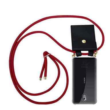 Cadorabo matkapuhelimen Suojakuori läpinäkyvästä TPU-silikonista johdolla ja pienellä kotelolla korteille ja rahalle