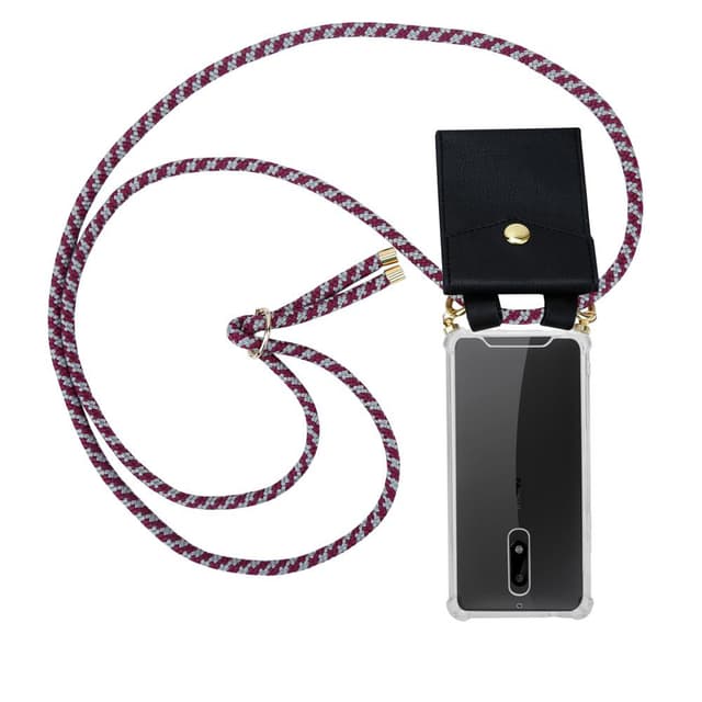 Cadorabo matkapuhelimen Suojakuori läpinäkyvästä TPU-silikonista johdolla ja pienellä kotelolla korteille ja rahalle