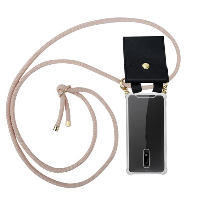 Cadorabo matkapuhelimen Suojakuori läpinäkyvästä TPU-silikonista johdolla ja pienellä kotelolla korteille ja rahalle